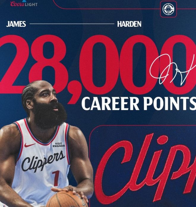 首节比赛,哈登打满12分钟,9投5中砍下17分2篮板2助攻1盖帽,生涯总得分突破28000分,创造了新的里程碑纪录,成为历史第11人(拿到28000分以上的球员)!