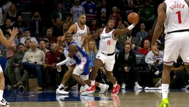 次节回来,巴图姆接球三分稳稳命中,快船已经领先到11分。乔治单打运球,连续转身胯下运球失误球出边线,有点丝滑了。埃奇库姆推进到禁区,迎着防守失去节奏后仰强投命中,76人将分差缩小至6分。克里斯蒂抛投命中,祖巴茨持球背打,多人合围下转身勾手再打进,76人直接叫停。马克西小打大单吃科林斯,突破对抗后低位勾手打进2+1,接着突破顶着邓恩漂移高难度抛投再中,带队追至4分分差。大洛佩斯接哈登传球,慢速突破低手上篮打成2+1,邓恩底角接哈登传球,假传真突无惧德拉蒙德完成双手暴扣,大洛底角接球横撤步三分再中,半场战罢,快船56-46领先76人10分。